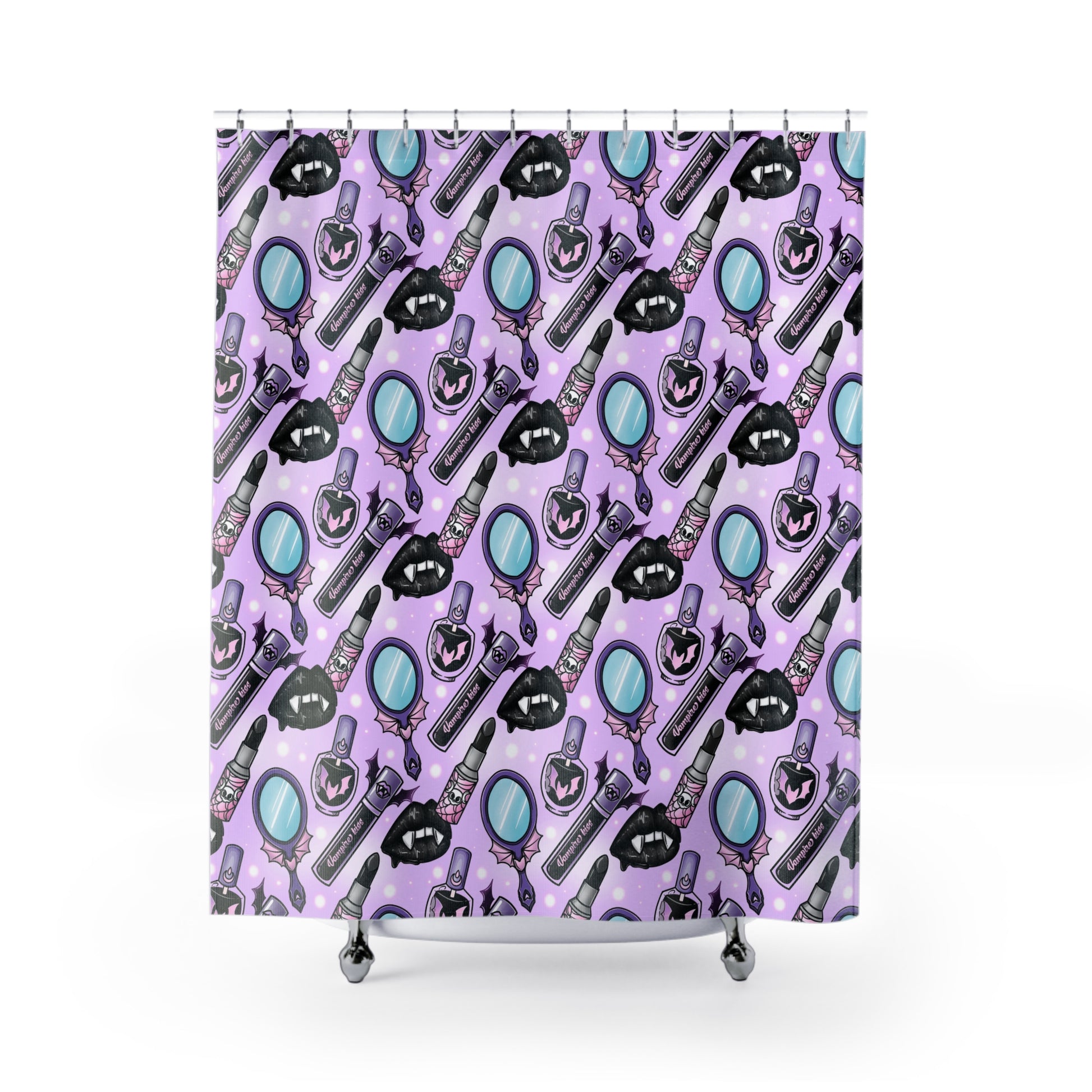 Sweetly spooky, delightfully vampy, and totally glam — the Pastel Goth Vampire Makeup Shower Curtain turns every shower into a darkly cute ritual. 💄🦇✨