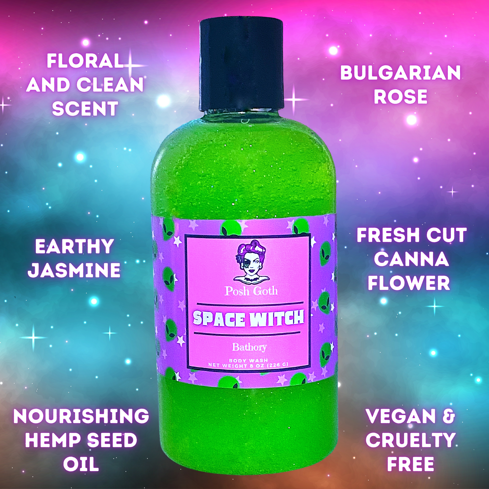 Space Witch Body Wash – Rose, Cannabis Flower and Jasmine | Witchy Bath and Body | Goth Beauty