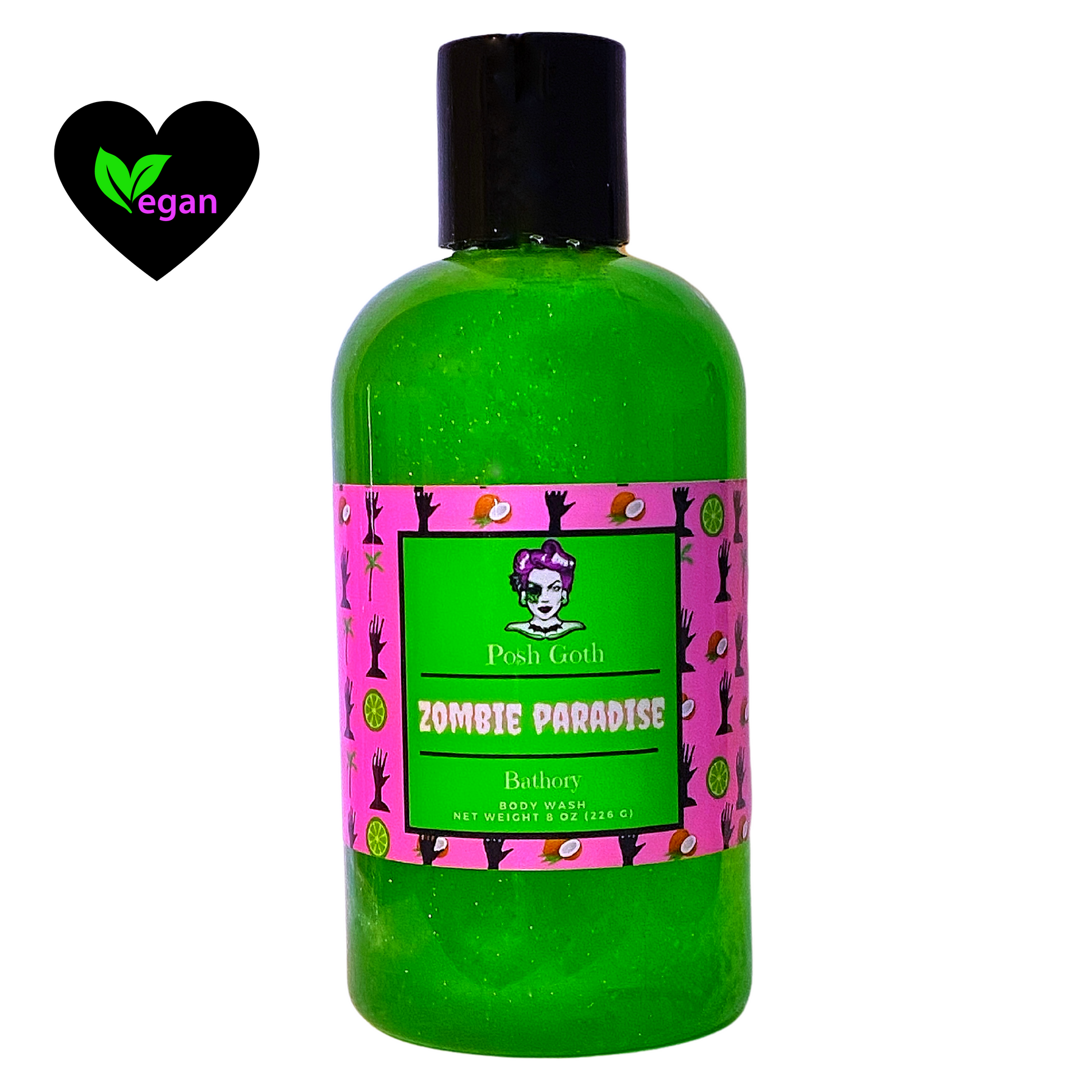 Zombie Paradise Body Wash – Coconut Cream and Key Lime | Witchy Bath and Body | Goth Beauty Vegan Wash